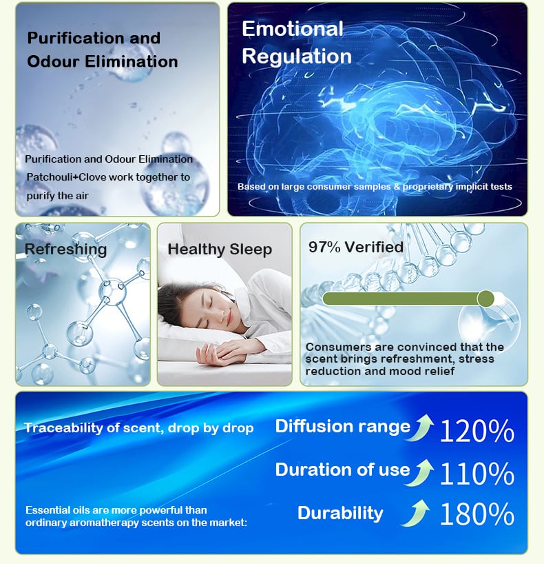 By diffusing deodorizing essential oils, promoting better sleep with calming scents, and creating a desired atmosphere with customizable fragrances.
