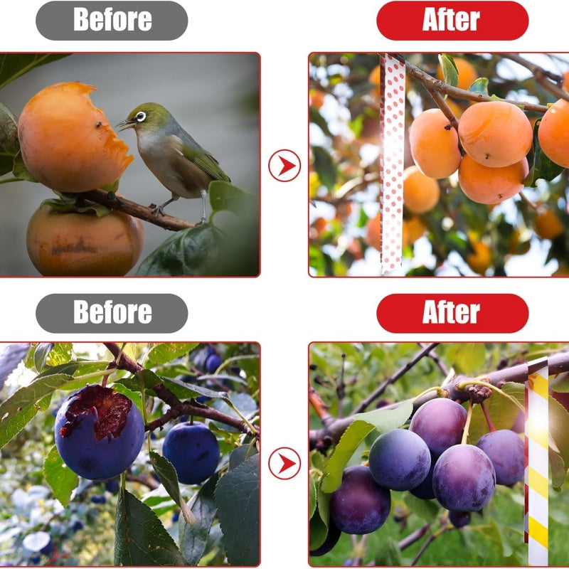 VERSATILE APPLICATIONS - Ideal for use in gardens, farms, patios, and orchards, this bird scare tape is perfect for protecting fruits, vegetables, and ornamental plants from being damaged.
