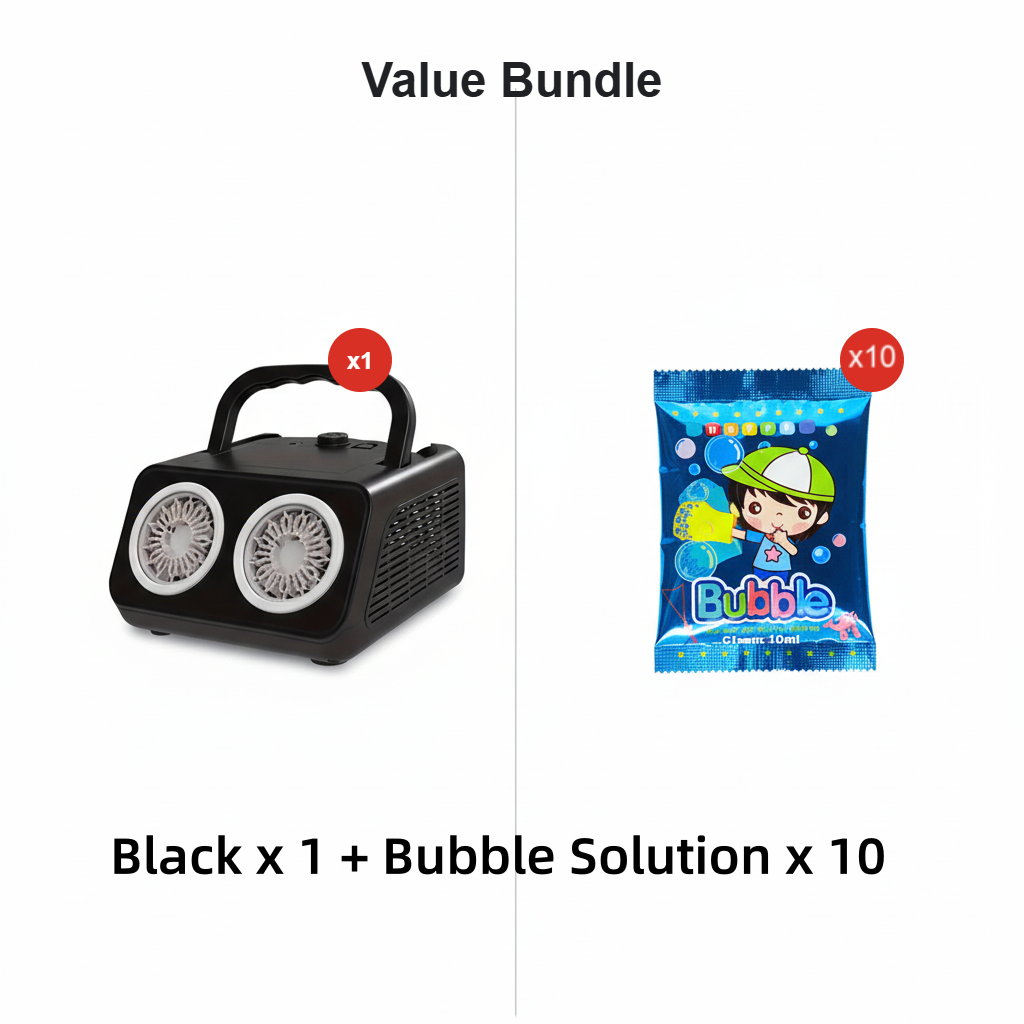 HIGH-BUBBLE OUTPUT – CREATES 2000+ BUBBLES PER MINUTE: Designed for fun-filled moments, this handheld multi-hole bubble machine produces over 2000 bubbles per minute, filling the air with a magical stream of floating bubbles. Whether at a birthday party, picnic, or beach outing, it brings instant joy and excitement for children and adults alike.