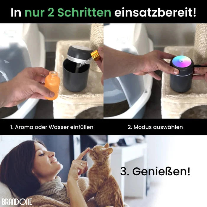 The diffuser adds your favorite essential oils, perfumes, or cologne to the air, creating a peaceful, aromatic environment. Perfect for your bedroom, living room, and car! Families with pets who find their home smelly can reduce the odor in their home after using it. It uses nano atomization technology to combine the fragrance with water to make diffusion 10 times more effective.
