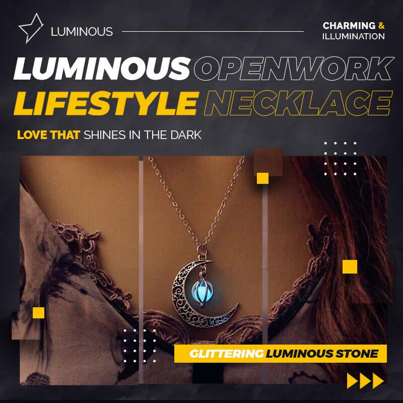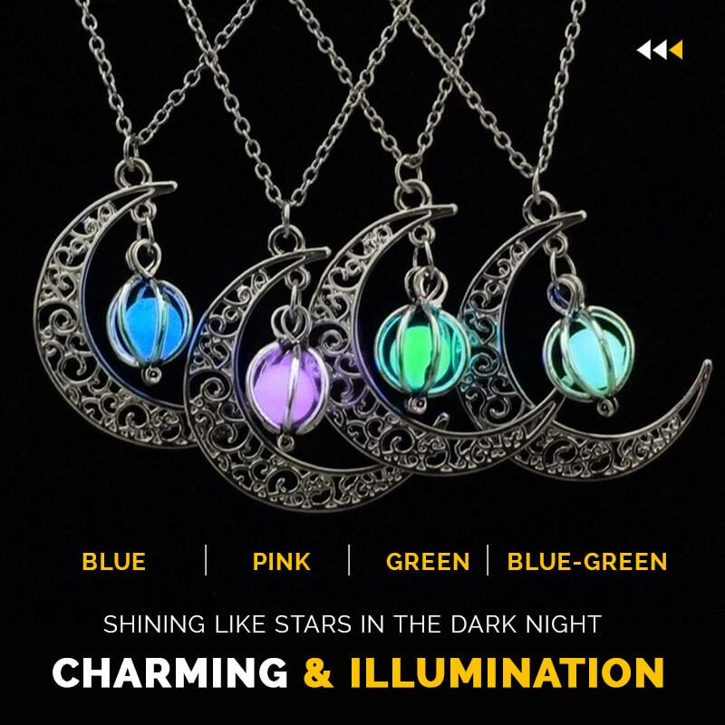 - Ignite the light in the darkness and make yourself the most unique being! The Luminous Openwork Crescent Necklace absorbs light during the day, glows at night and guides you through the darkness.