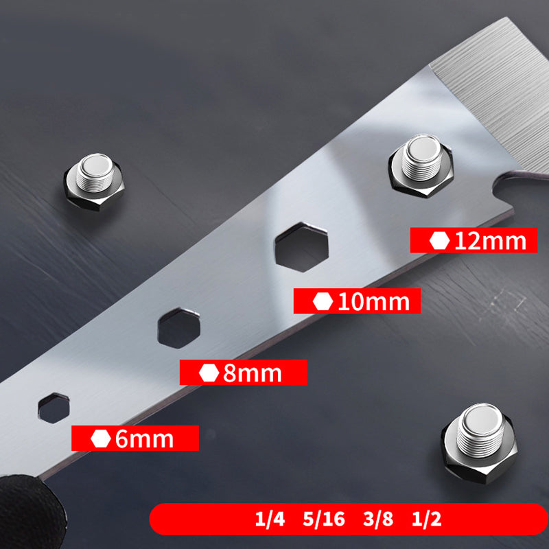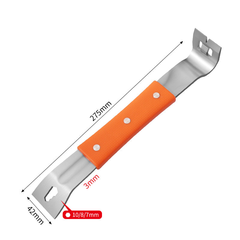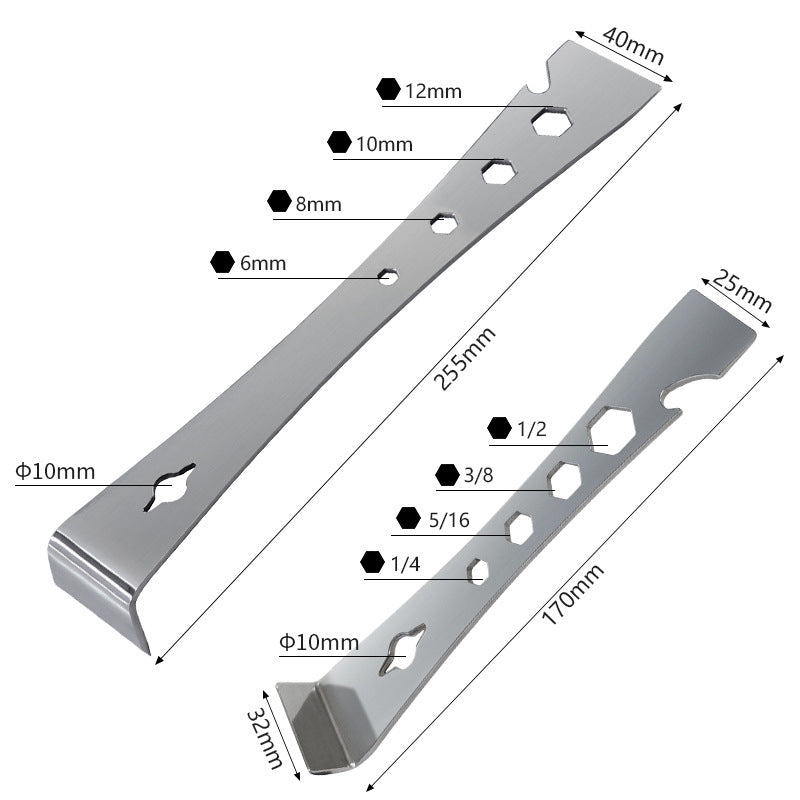 ALL IN ONE TOOL - This multi-functional tool serves as a crowbar, nail puller, hex socket, hive tool, and bottle opener, making it perfect for everyday carry. Features hanging holes for easy storage and suitability for various working scenarios.