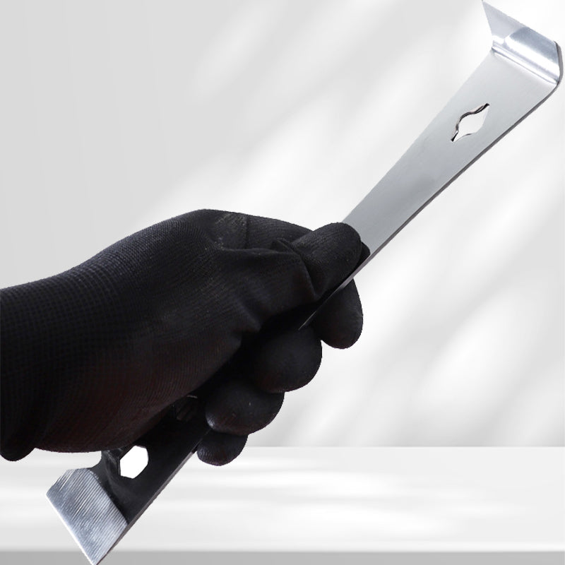 This Stainless Steel Pry Bar Scraper is a versatile tool designed for various applications such as woodworking, automotive, home improvement, and more. Its durable construction ensures reliable performance in tight spaces.