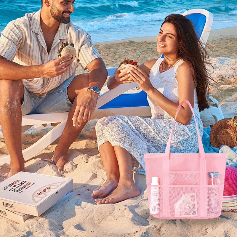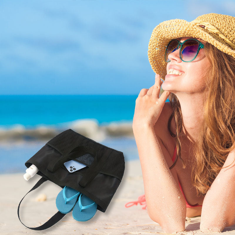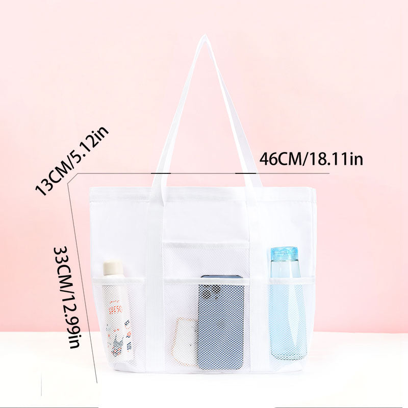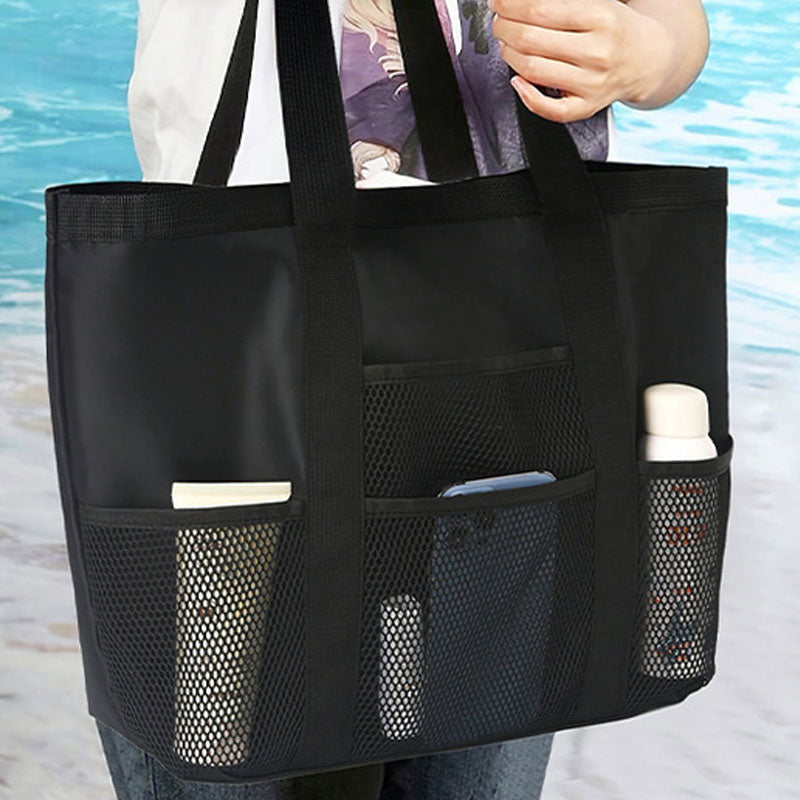 Vacation-Style Large-Capacity Tote Bag with Mesh Compartments😍