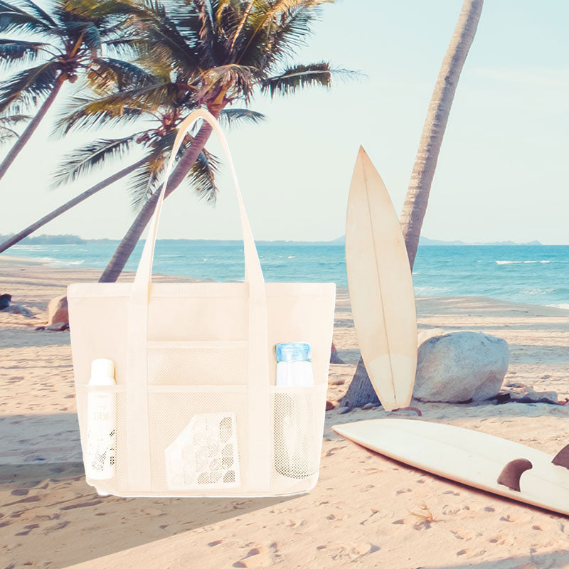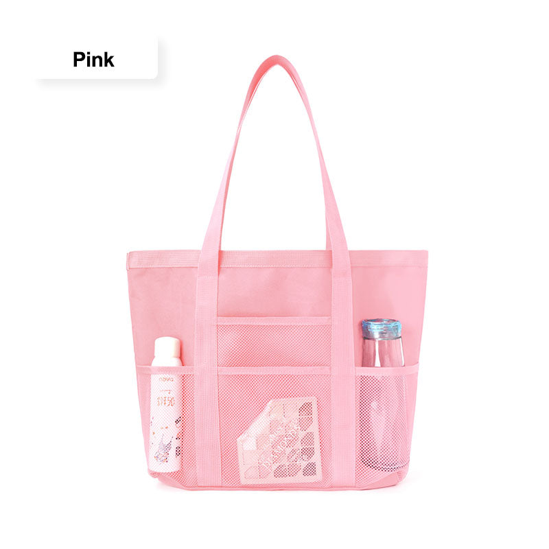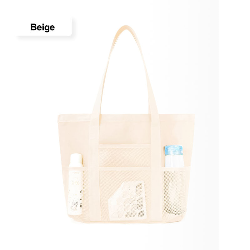 MULTIPLE MESH COMPARTMENTS: The outer of the tote bag features multiple mesh compartments, providing organized storage for your belongings. Keep your items separated and easily accessible while on the go.