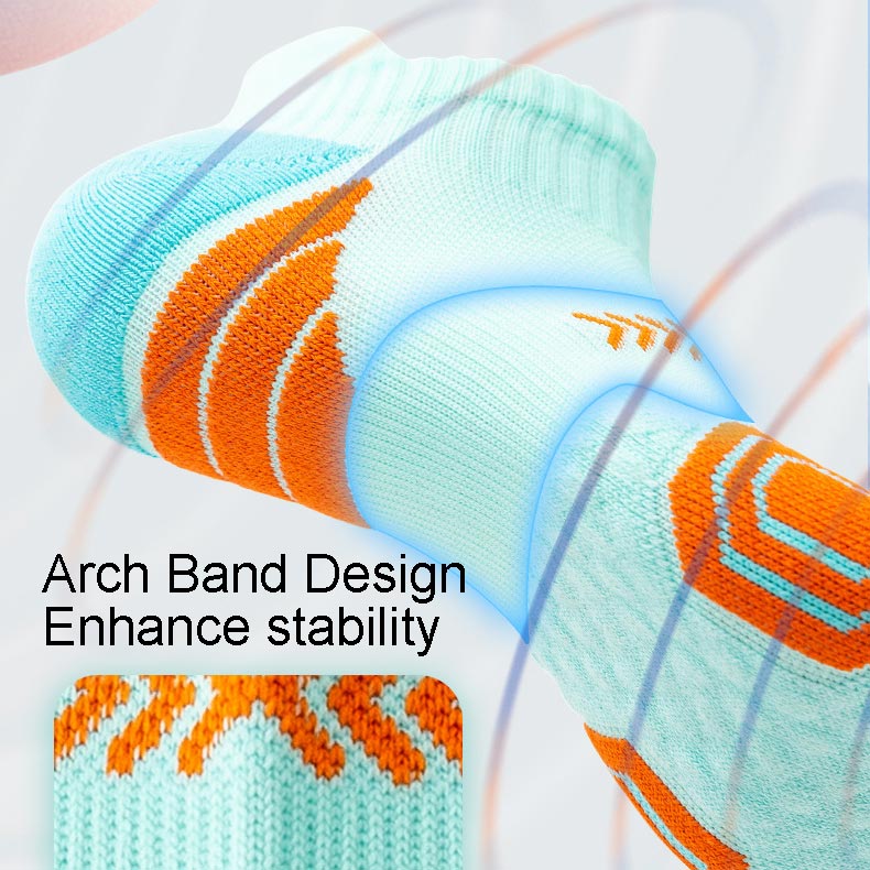 ARC BAND DESIGN: The socks feature strategically placed arc bands that fit the foot arc closely, reducing foot fatigue and enhancing stability during rigorous movements.