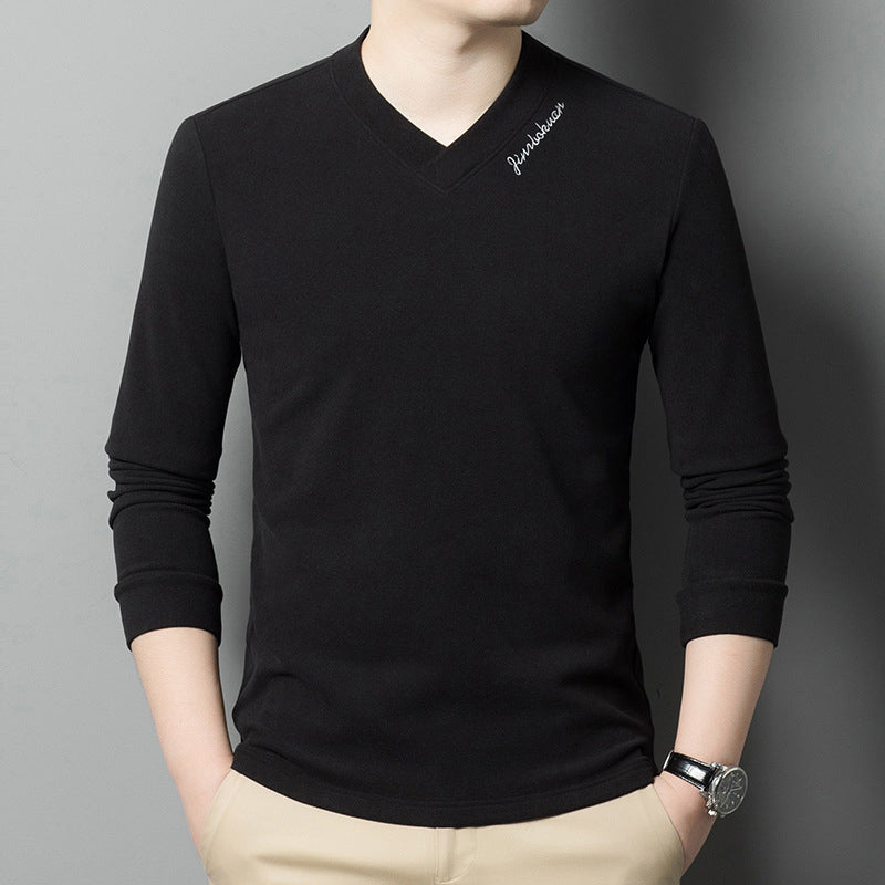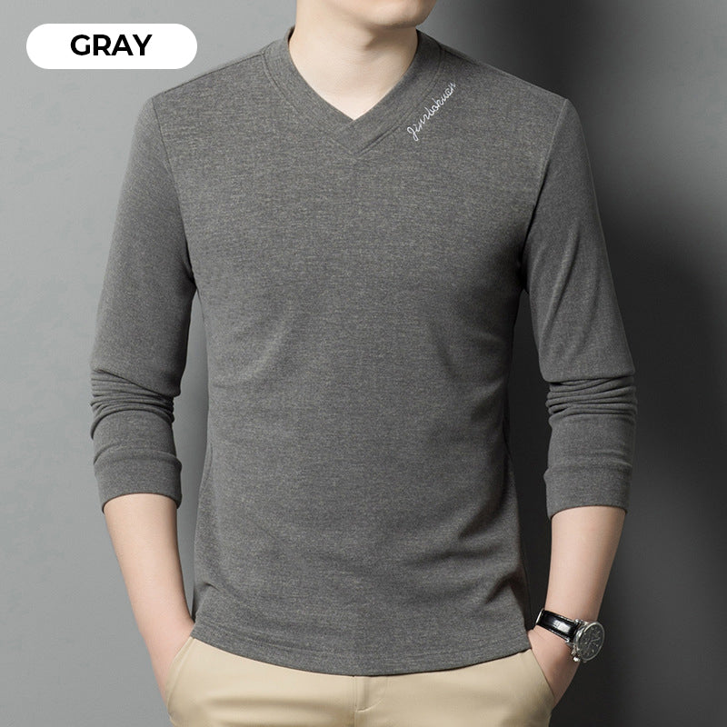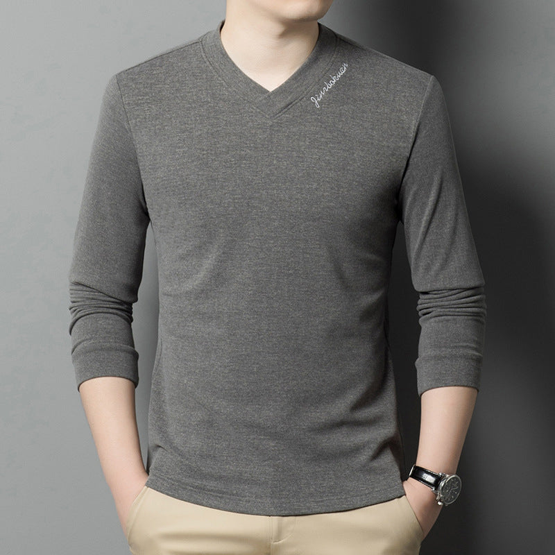 Men's V-Neck Solid Color Long Sleeve T-Shirt