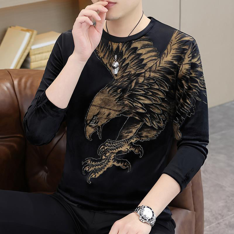 STYLISH EAGLE PRINT DESIGN: Featuring a bold eagle print surrounded by rhinestone-like detailing, this pullover is perfect for adding a touch of masculine charm and sophistication to your outfit.