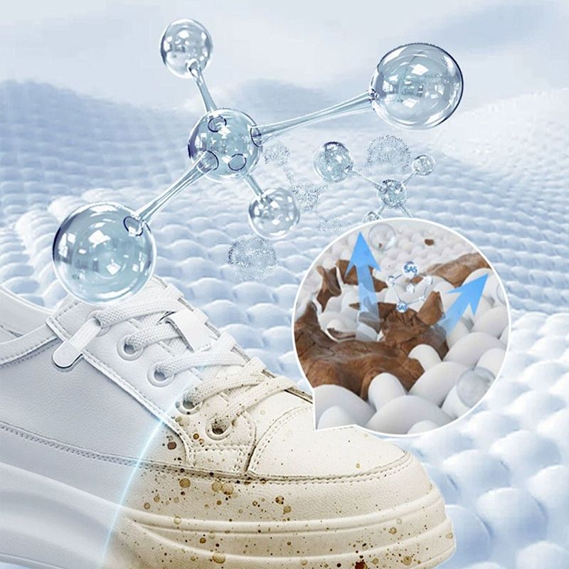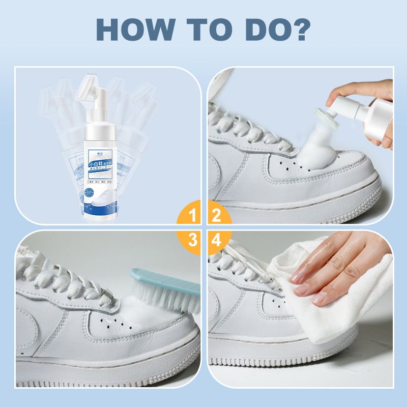 EFFECTIVE CLEANING POWER: The foam-based formula effectively lifts and removes stubborn dirt, stains, grime, and yellowing from white shoe materials, including canvas, leather, and synthetic fabrics. The powerful cleaning agents quickly penetrate and break down even the toughest dirt and discoloration.