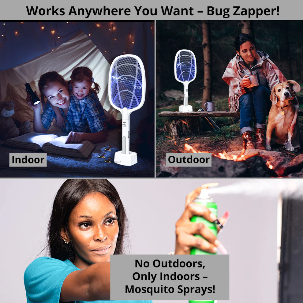 When it comes to getting rid of pesky mosquitoes, many people are torn between using a mosquito spray and an electric mosquito swatter. Spraying mosquito repellent all over your body may keep the mosquitoes away, but it won't stop them from invading your home. This 2-IN-1 ELECTRIC MOSQUITO SWATTER is a more effective solution to protect your family from diseases like Dengue fever.