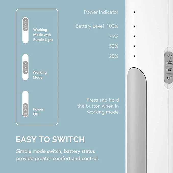 【Automatic Mosquito Swatter】When the mosquito catching and killing mode is turned on at night, the unique ultraviolet LED lamp is targeted to attract mosquitoes, and automatically kills mosquitoes. Pure physical light waves, no radiation, harmless to humans