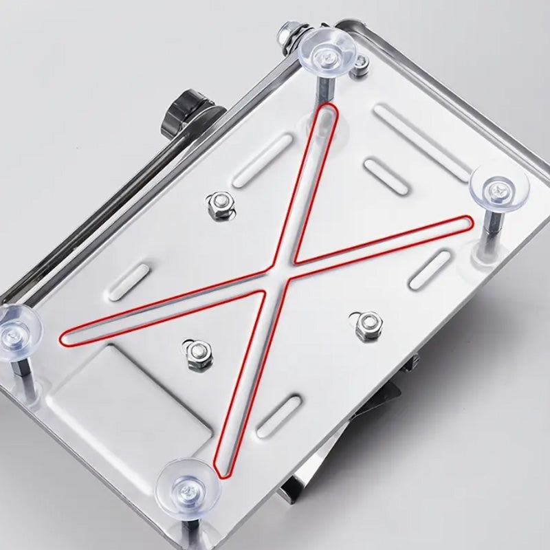 HIGH-QUALITY MATERIALS - Crafted from reinforced stainless steel, our slicer is built to withstand substantial pressure and is easy to clean with proper maintenance. The thickened foam sponge handle provides a comfortable grip, while the strong suction cup feet enhance stability during use.