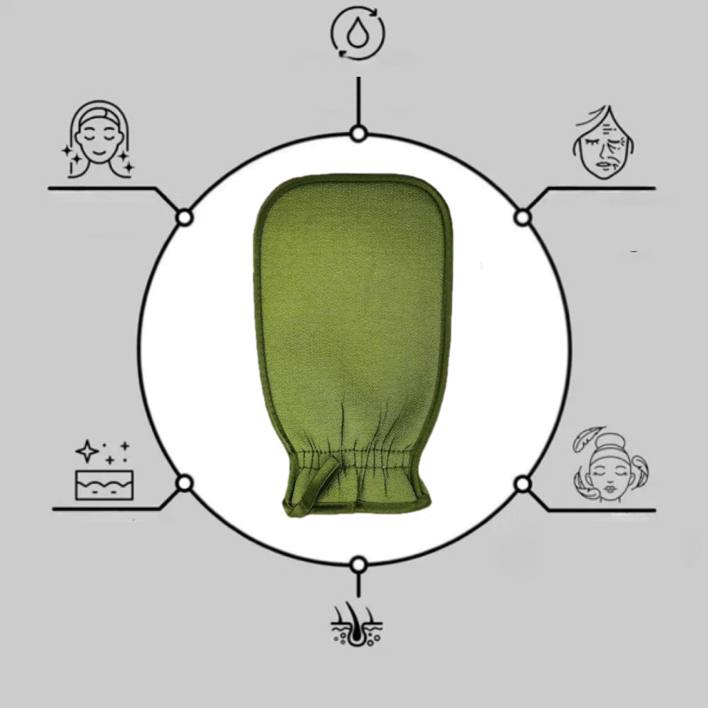 Handmade from biodegradable plant fibers, the exfoliating glove visibly removes dead skin with just water. Put an end to dry and flaky skin, keratosis pilaris, ingrown hairs and uneven skin texture...