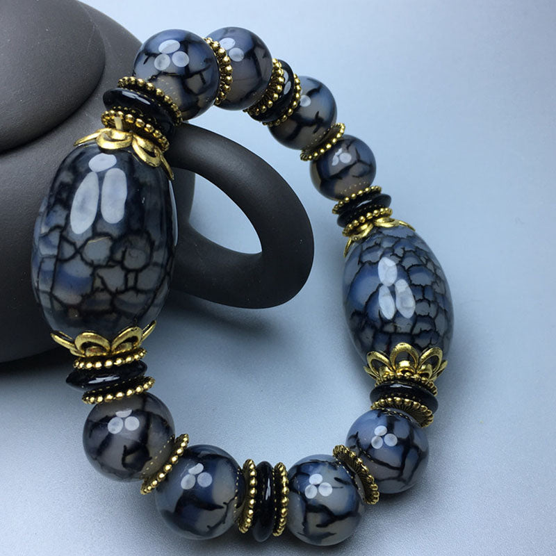 TEXTURED GLAZE BEADS: The bracelet features beautifully textured glaze beads that add visual interest and a unique dimension to its overall design. The beads are carefully crafted to provide a vintage-inspired look with a touch of subtle glamour.