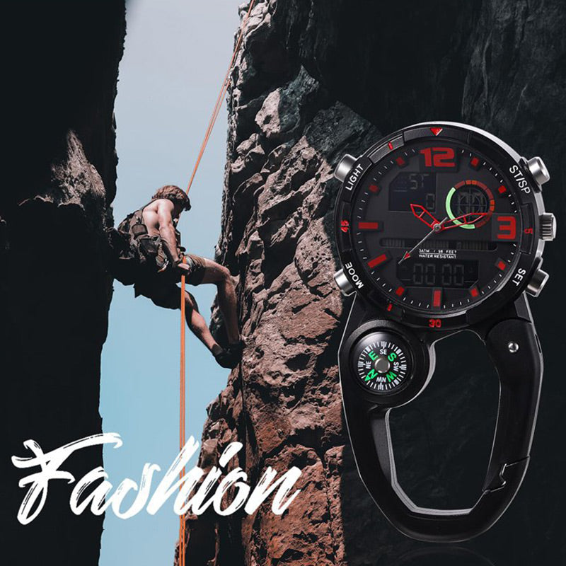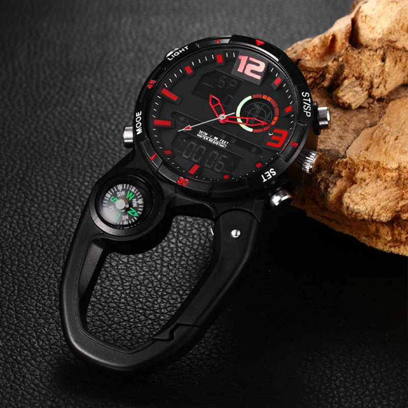 Round Screen Outdoor Carabiner Watch with Compass