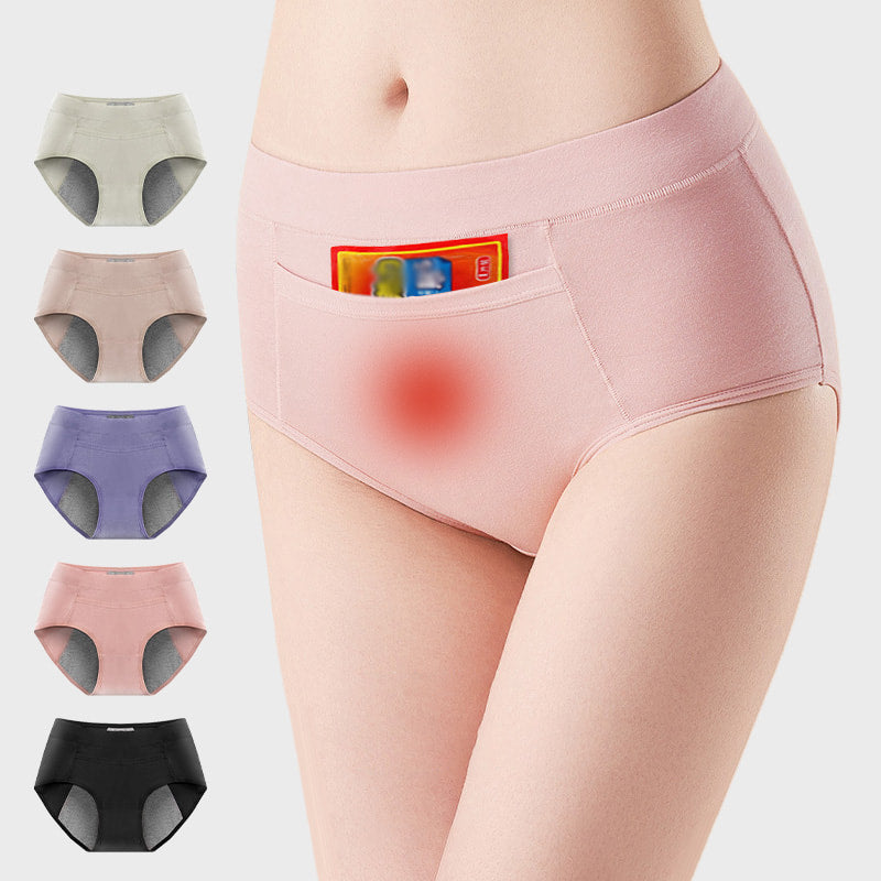 Designed for everyday wear, these panties provide comfort, security, and versatility. Features a discreet pocket at the front for carrying small items such as sanitary pads and warm paste.