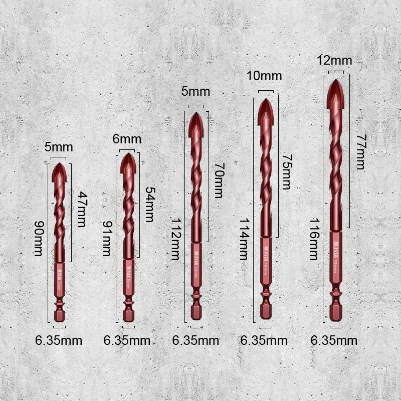 UNIVERSAL 6.35MM HEXAGON SHANK - Designed with a universal 6.35mm hexagon shank, these bits are compatible with most electric drills, hand drills, and lithium drills.