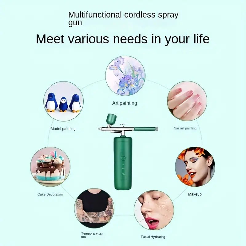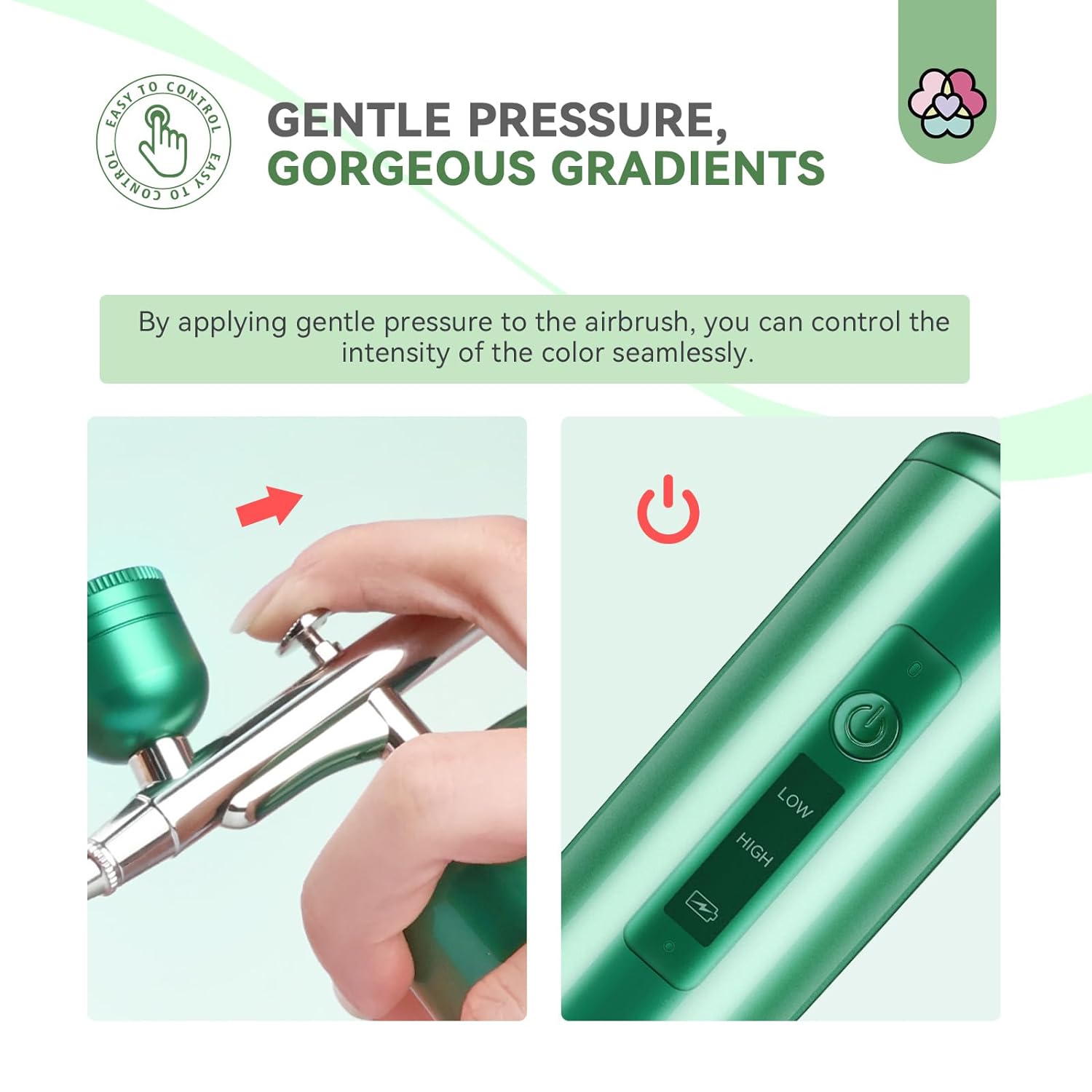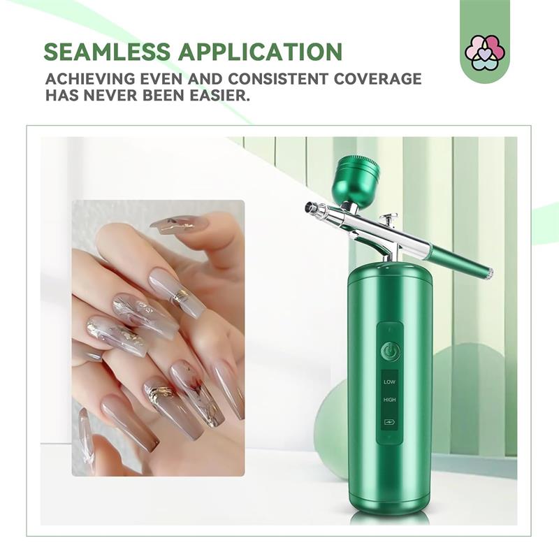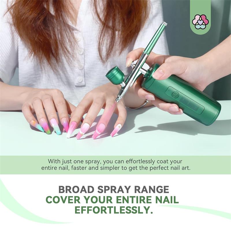 - Precision and Efficiency: airbrush features a 0.3 mm nano nozzle, enabling precise and accurate spray patterns while minimizing product wastage. The nozzle allows for adjustable atomization, ensuring high-definition spray without visible particles, giving your nail art a professional finish.