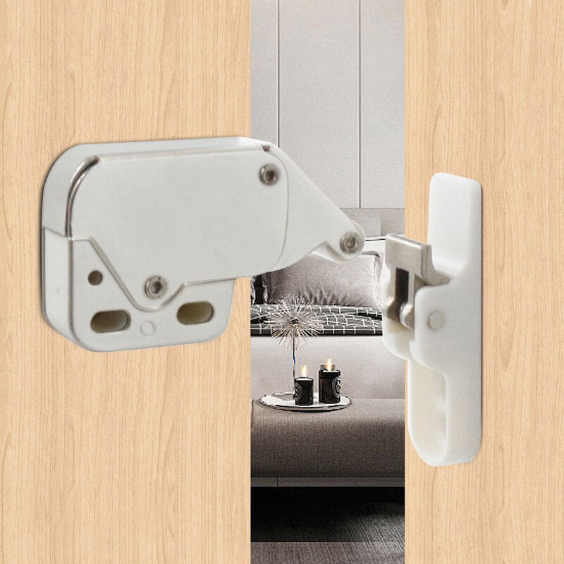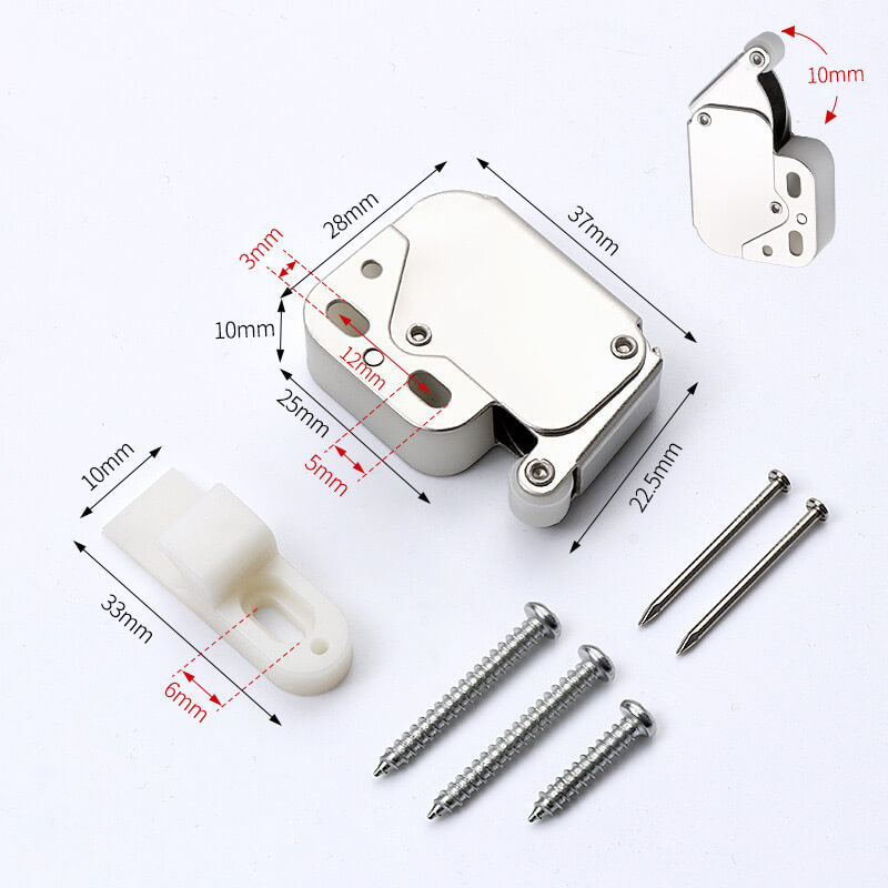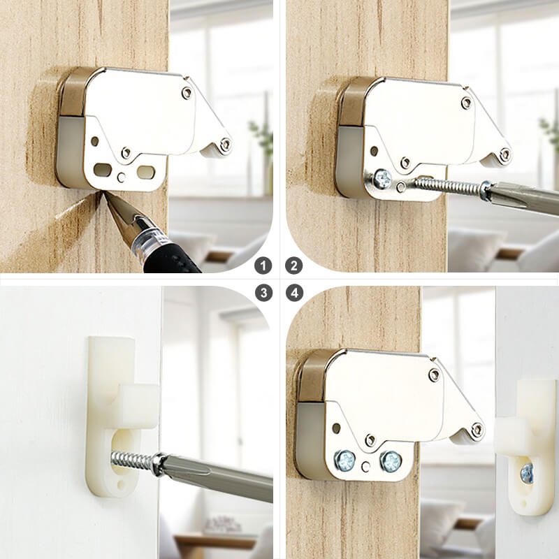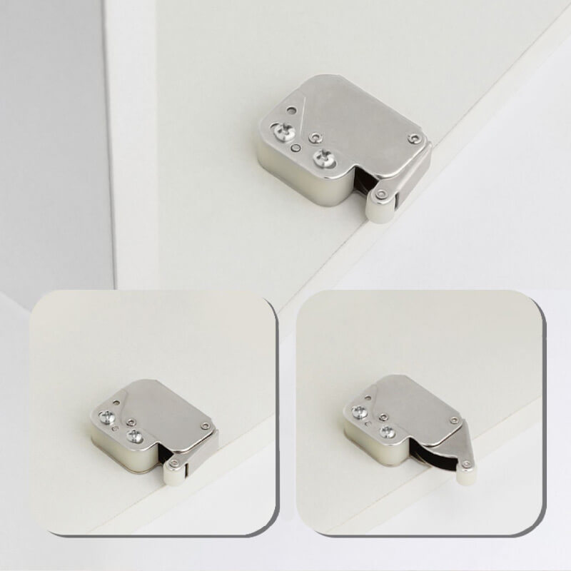 STRONG SPRING: This touch bounce lock has a built-in clip spring, and the contraction of a strong spring can close the door,ensures that your cabinet door and drawer won't be loose anymore. This force is just right and won't make you feel hard to open your cabinet or drawer.