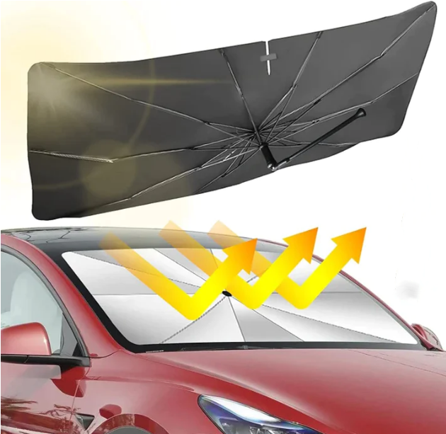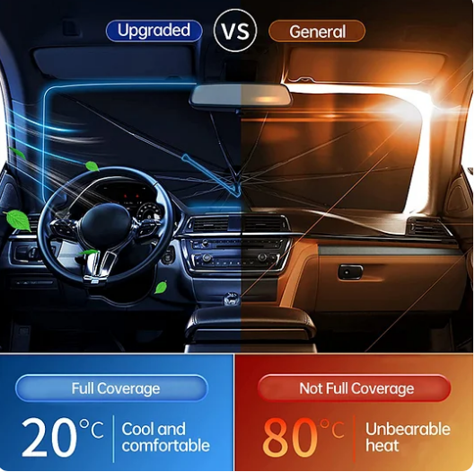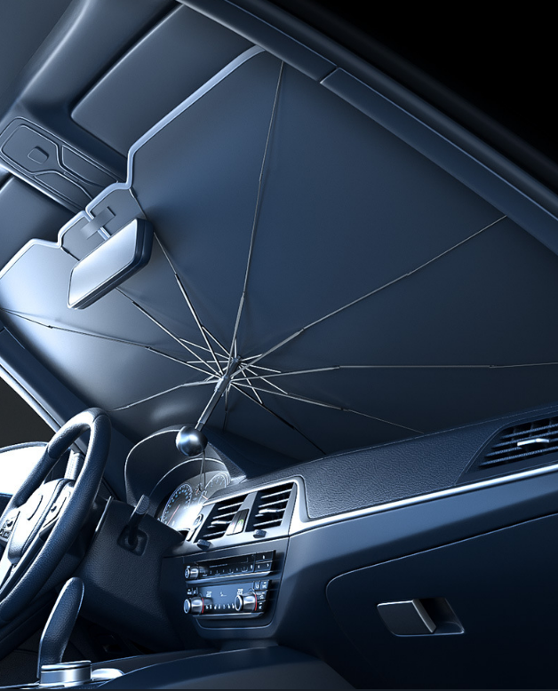 Car Windscreen Sunshade is made of silver titanium rubber + carbon nano-bumping fabric, with UV blocking rate up to 99%.