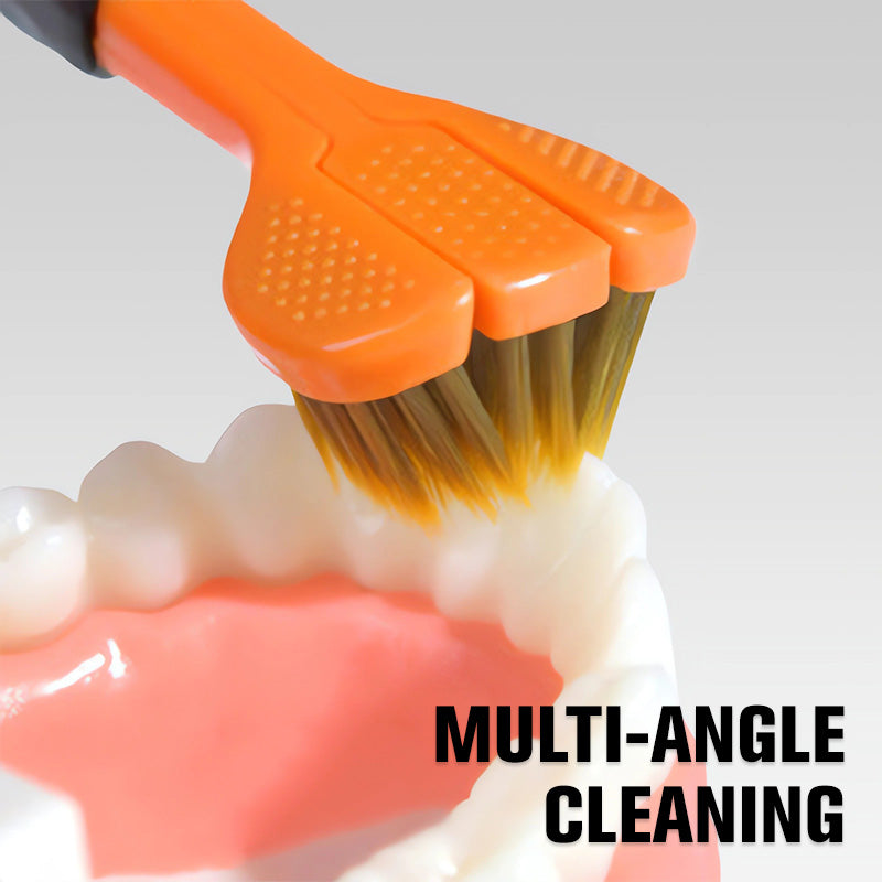 CLEANING EFFICIENCY - The innovative three-sided design cleans all tooth surfaces in one motion, significantly reducing brushing time while enhancing effectiveness compared to traditional single-sided brushes.