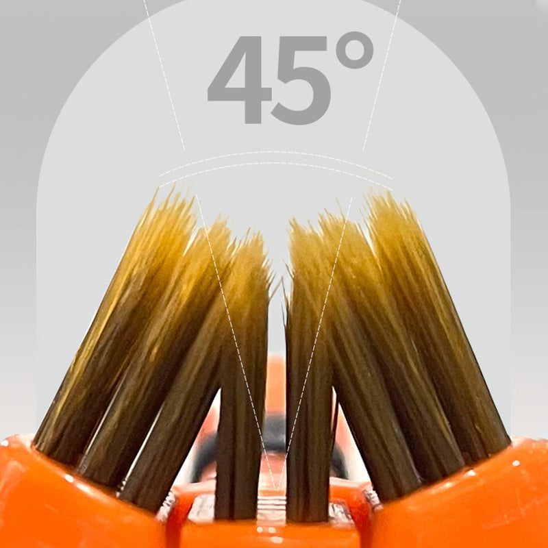 TRIPLE-SIDED BRUSHING - Features three bristled sides that clean all tooth surfaces simultaneously, providing a thorough and efficient brushing experience. The unique head design reaches hard-to-access areas effectively.