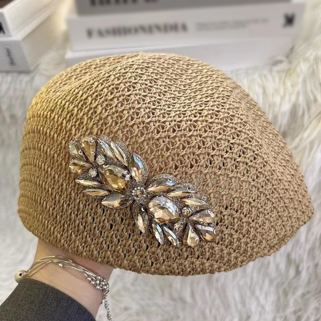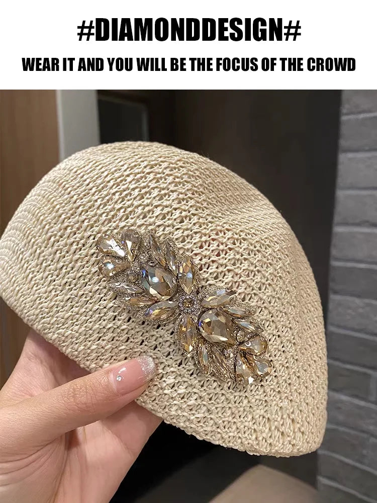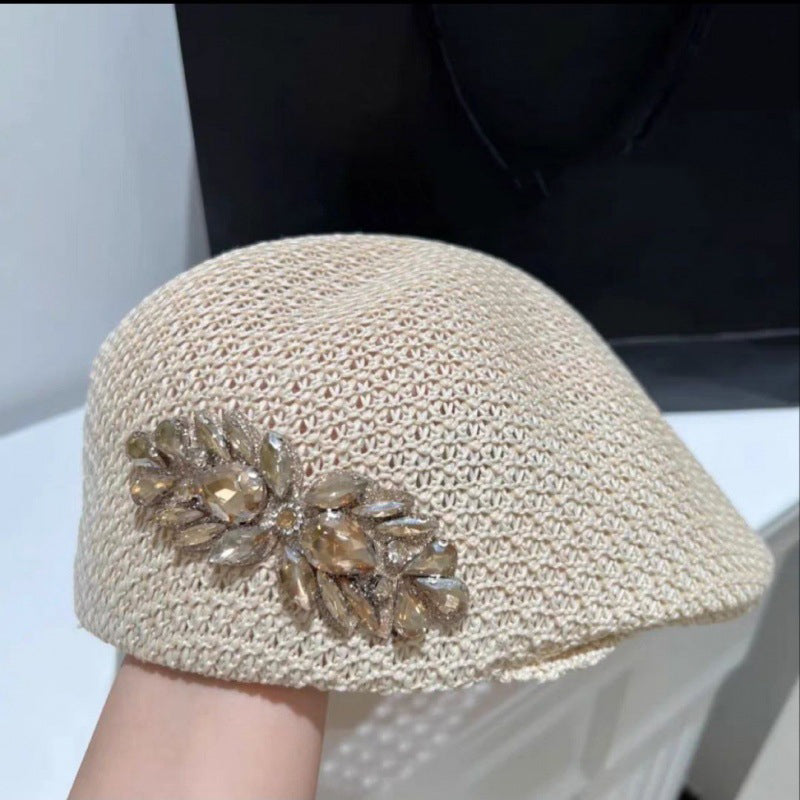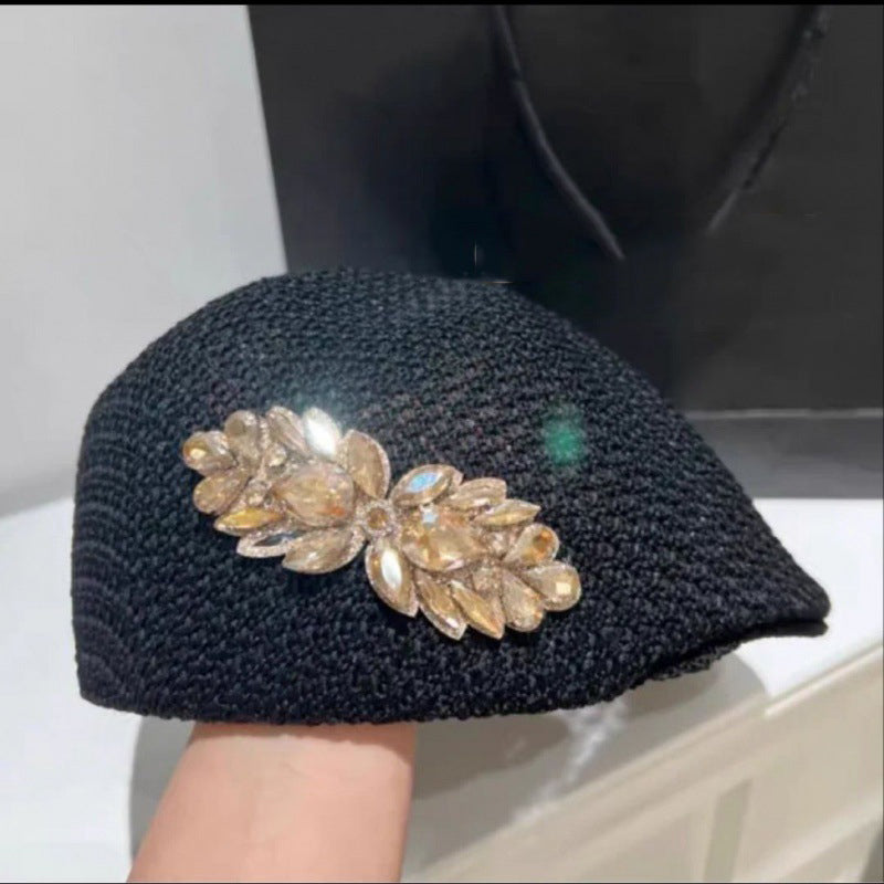 Thin Crochet Japanese Style Versatile Rhinestone Beret
