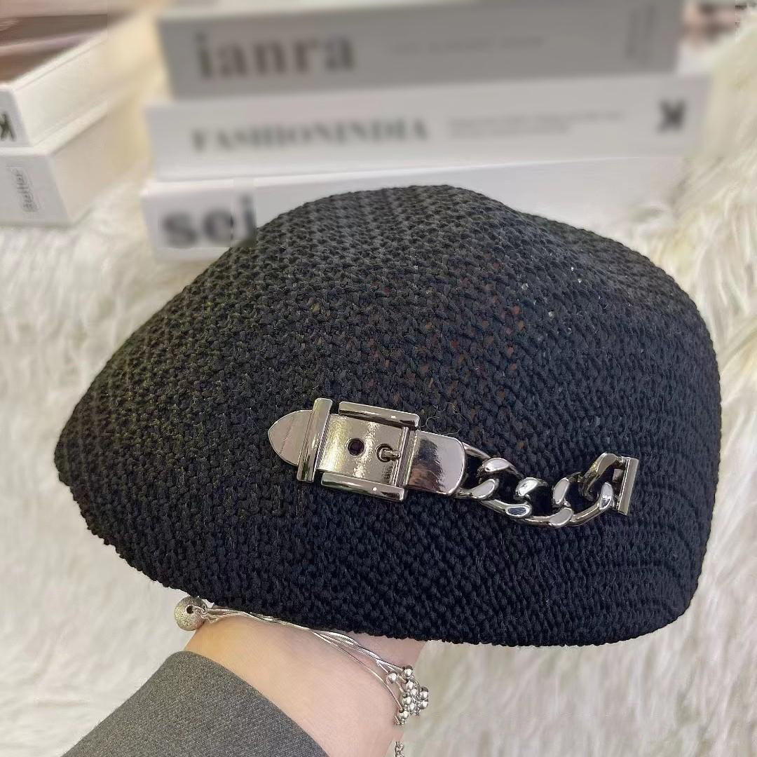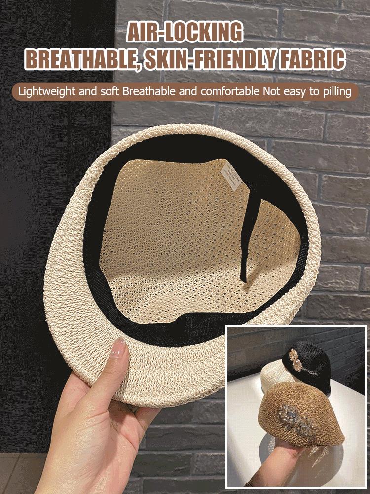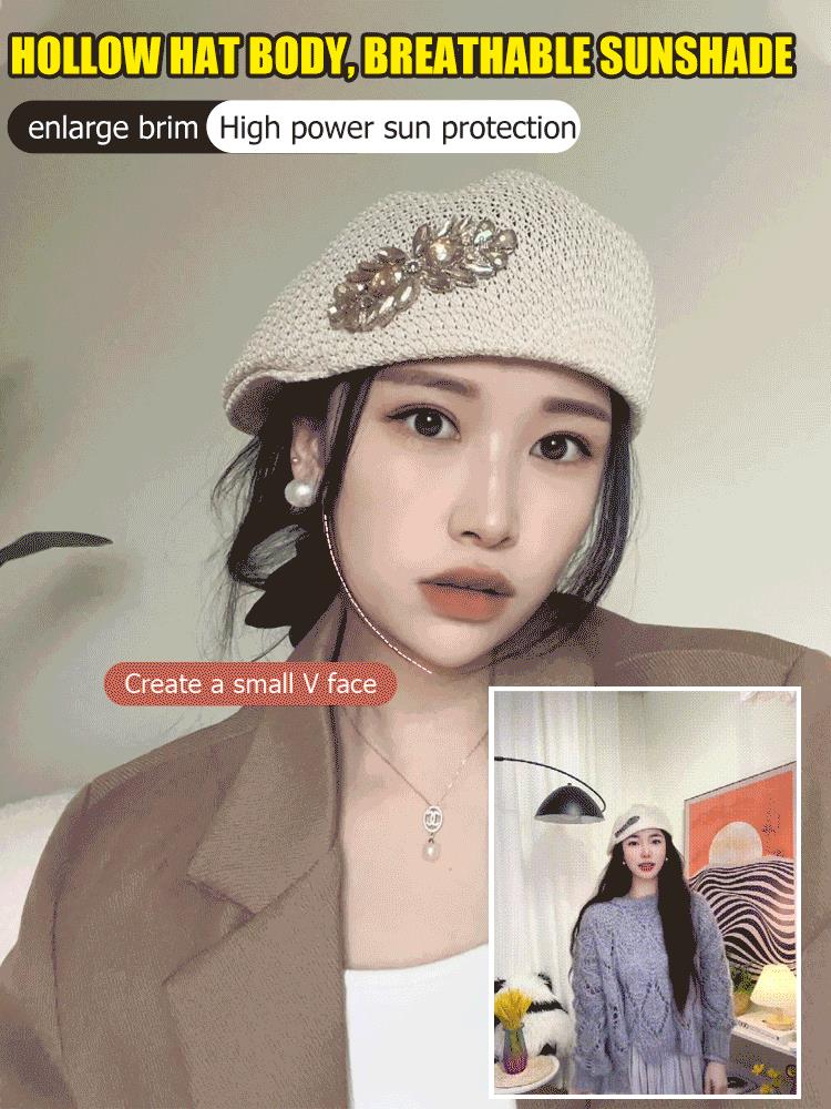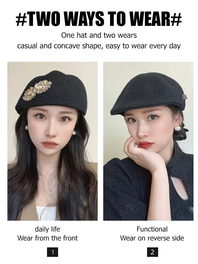 Thin Crochet Japanese Style Versatile Rhinestone Beret