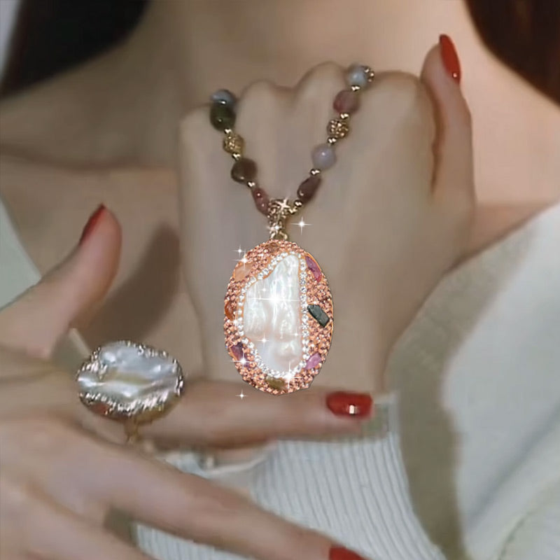Retro Elegant Embedded Artificial Pearl Accessories - Long Necklace, Earring & Ring✨
