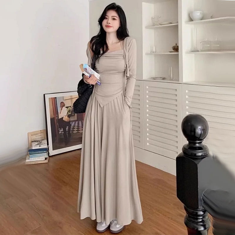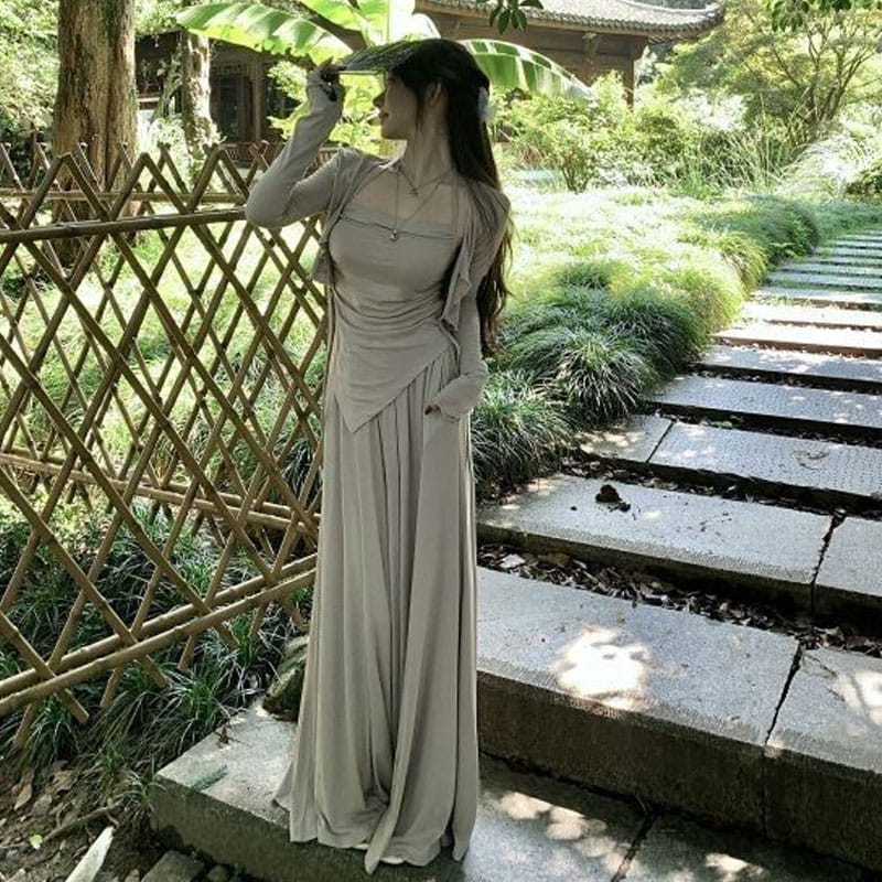 1 * Women's Lightweight Cardigan & Halter Tops & Wide-Legged Pants Three-Piece Set