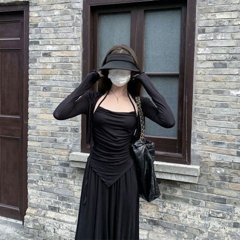 COMPLETE THREE-PIECE SET - Includes a lightweight cardigan, halter tops, and wide-legged pants for a coordinated look.