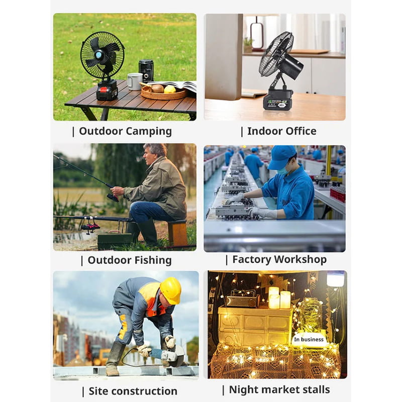 VERSATILE USE: Perfect for various settings, including outdoor camping, indoor office spaces, factory workshops, and night market stalls, ensuring comfort wherever you are.