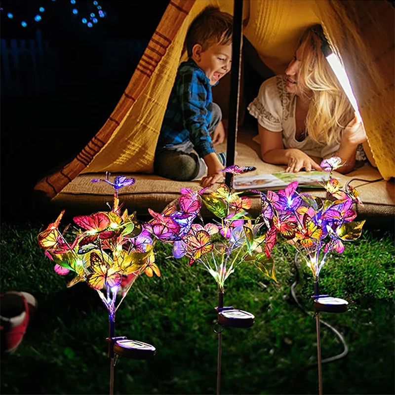 STUNNING BUTTERFLY DESIGN - These ground stake lights feature intricately crafted butterfly designs that add a touch of charm and whimsy to your outdoor space.