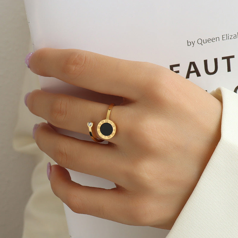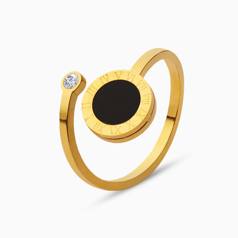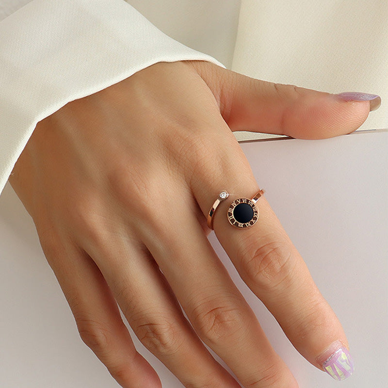 DESIGN - This ring showcases intricate Roman numerals, reminiscent of clock markings, symbolizing everlasting love. It serves as a poignant reminder that love transcends the changing tides of time.