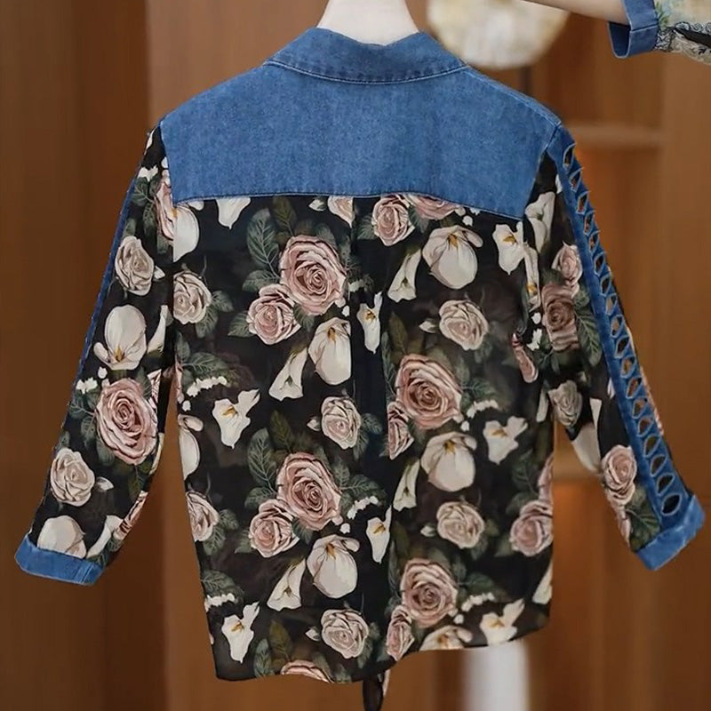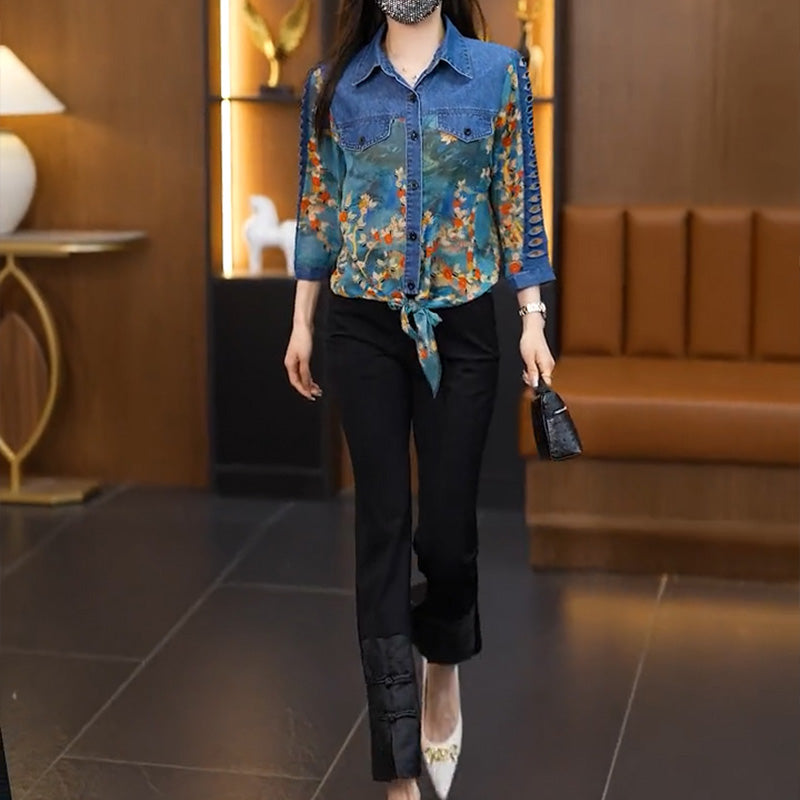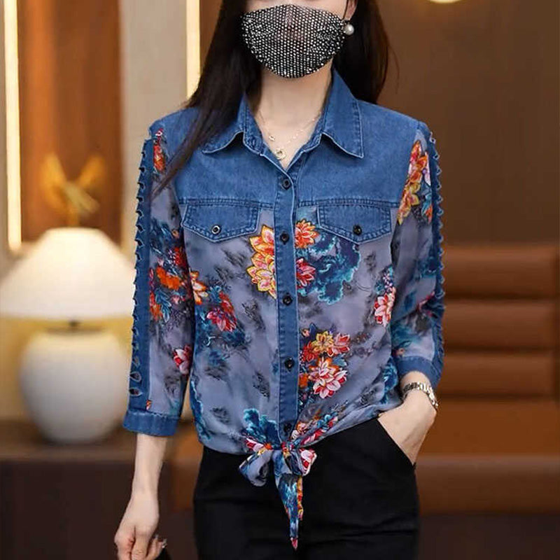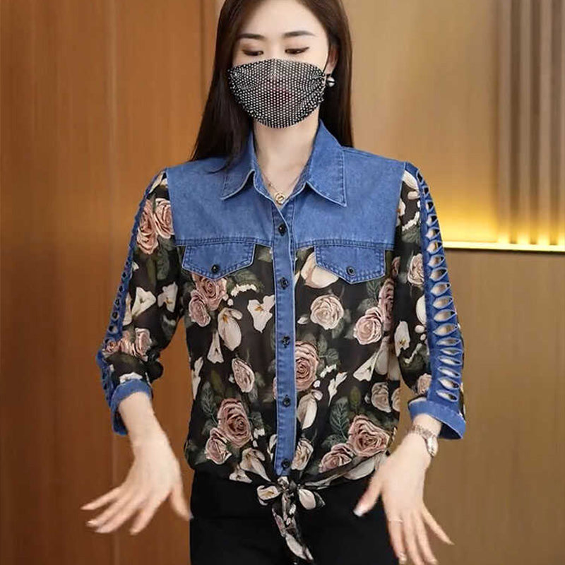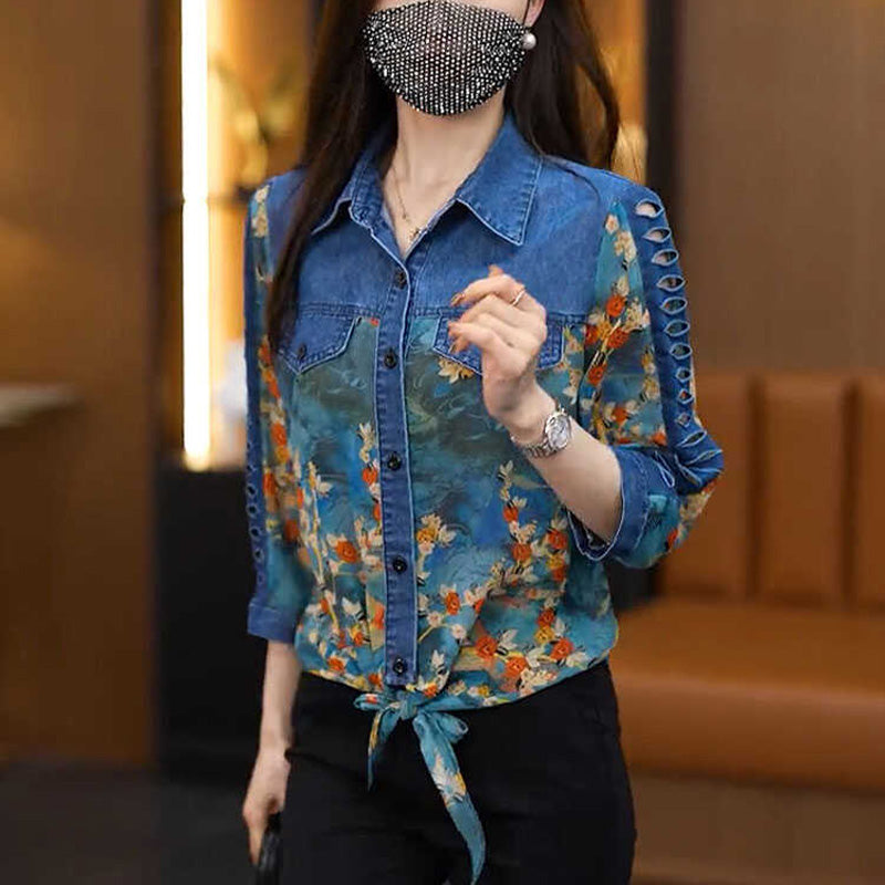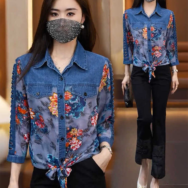 STYLISH PATCHWORK DESIGN - This shirt boasts a captivating patchwork design that blends denim and floral prints for a unique, vintage-inspired aesthetic.
