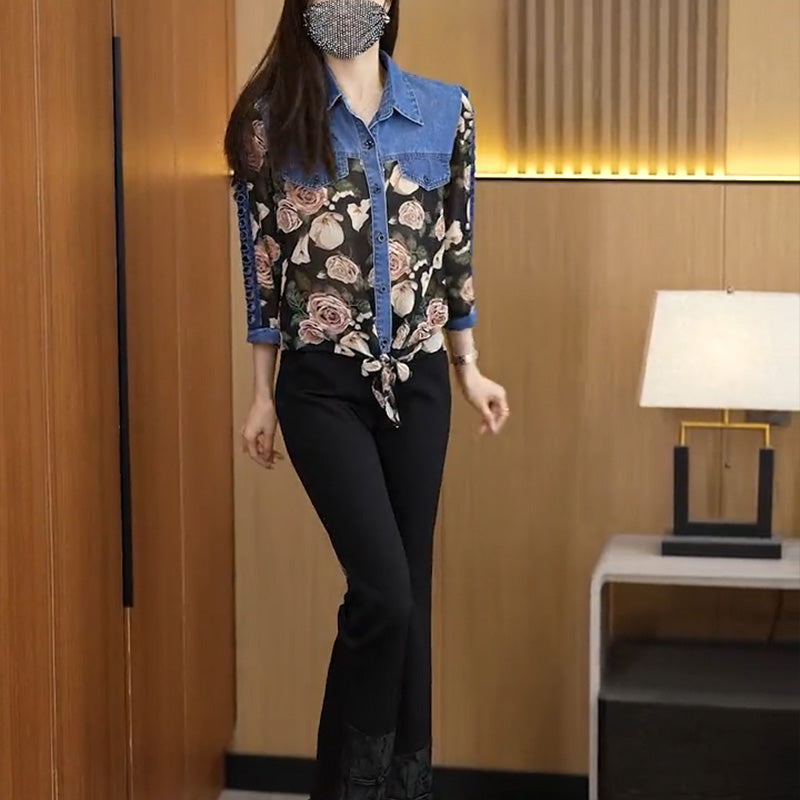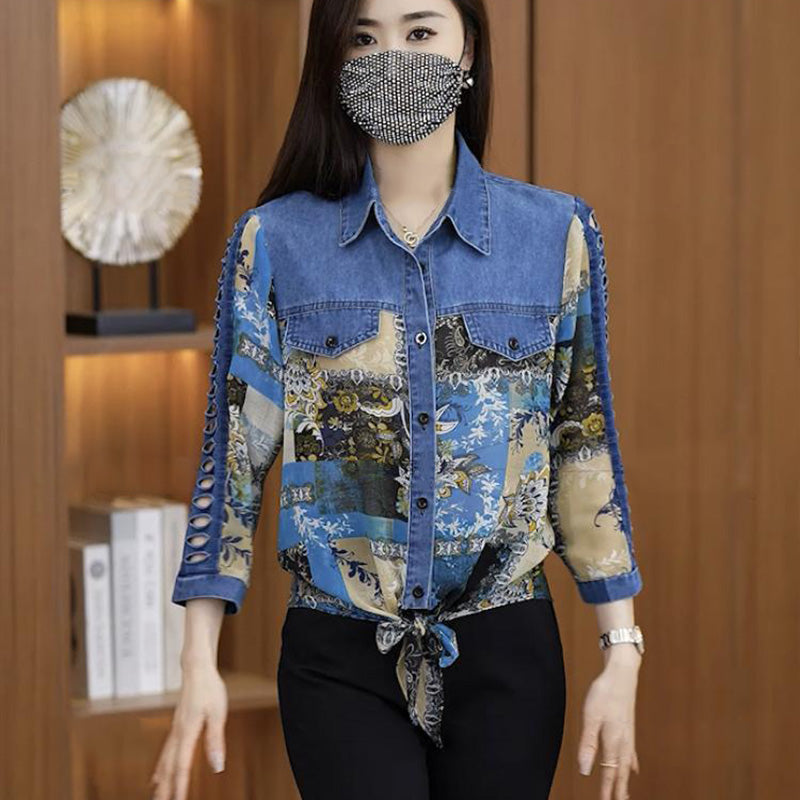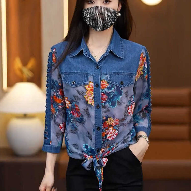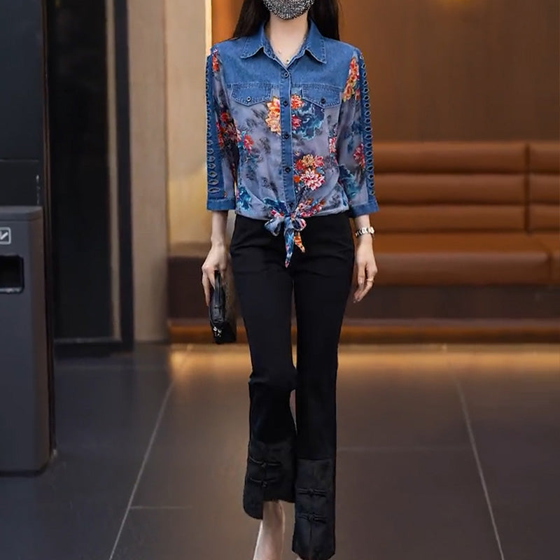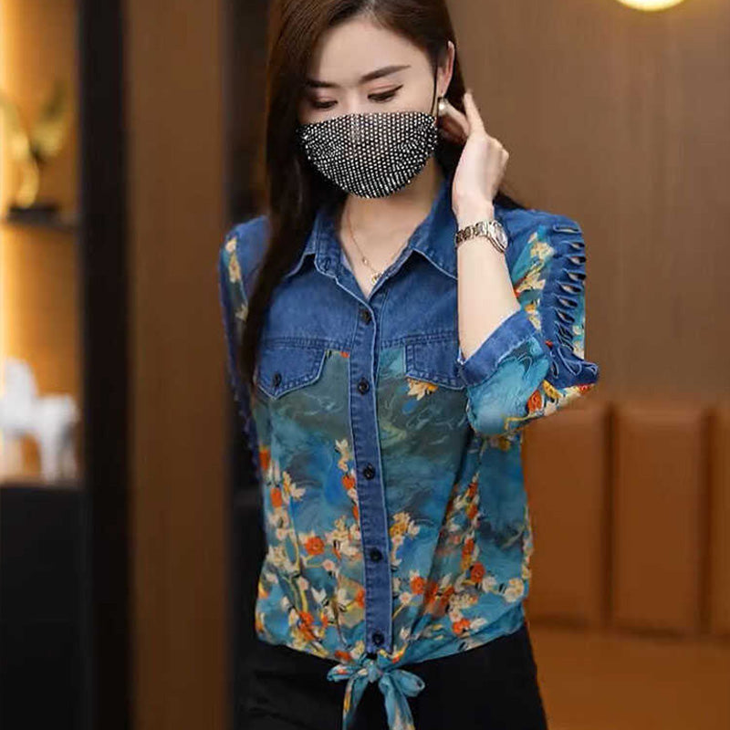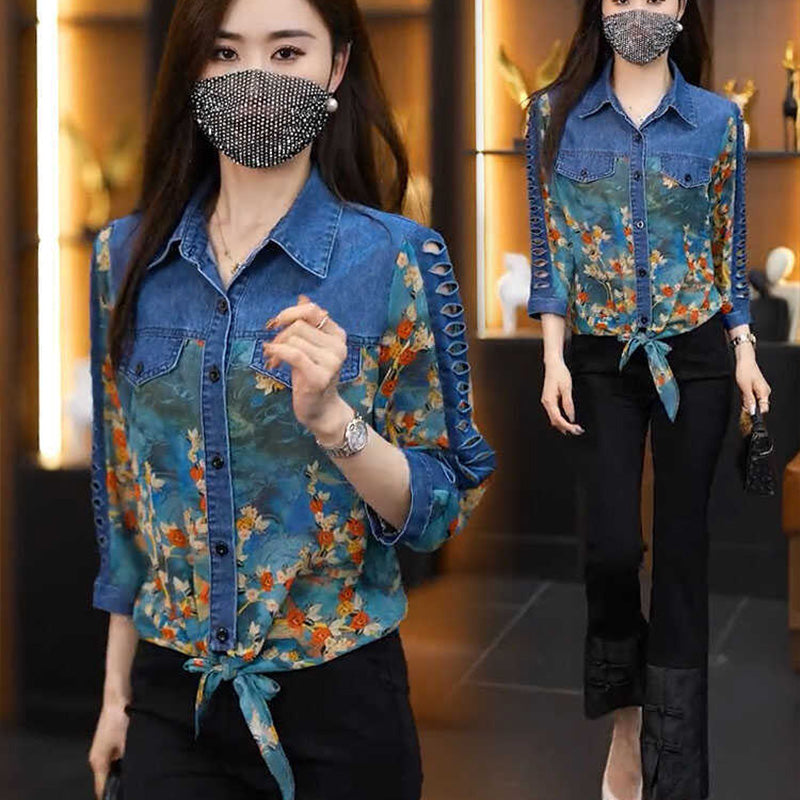 STYLISH PATCHWORK DESIGN - This shirt boasts a captivating patchwork design that blends denim and floral prints for a unique, vintage-inspired aesthetic.