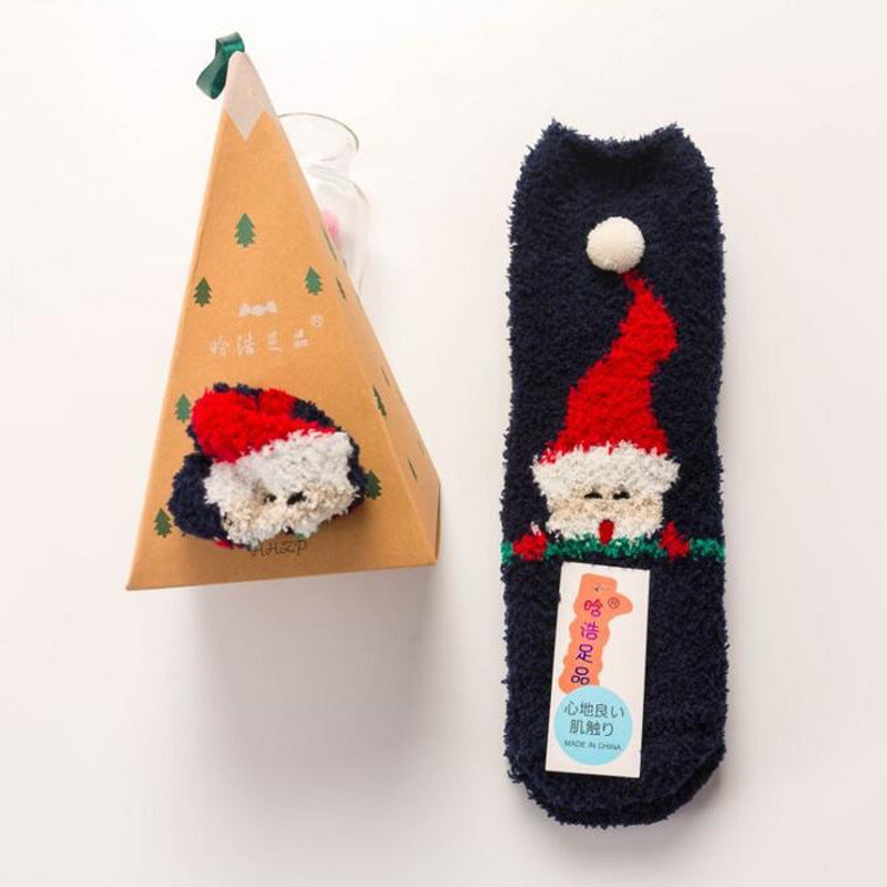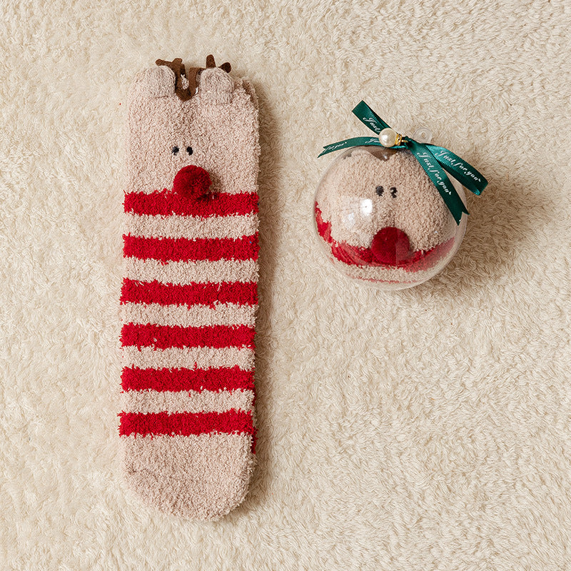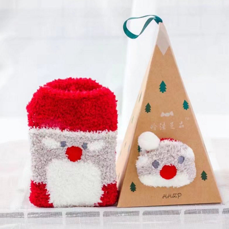 - 1 pair x Cute Christmas Style Socks / 1 x Present Box